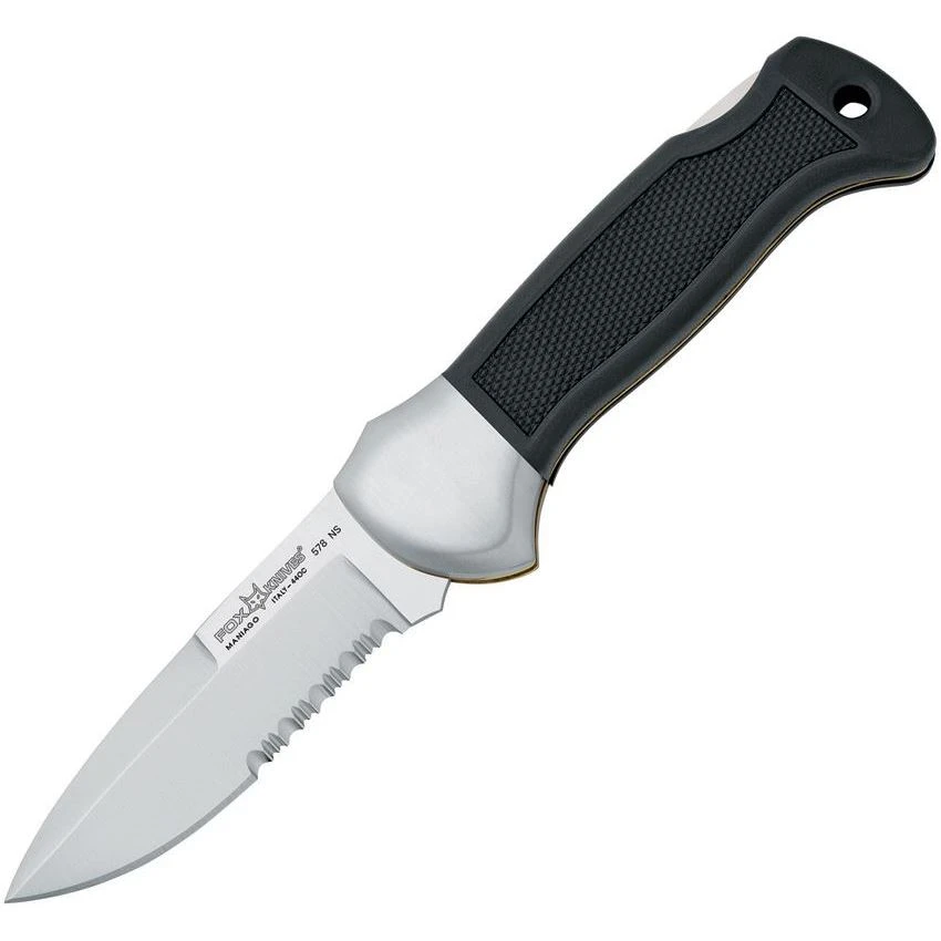 - 3.75″ (9.53cm) satin finish partially serrated Bohler N690 stainless spear point blade