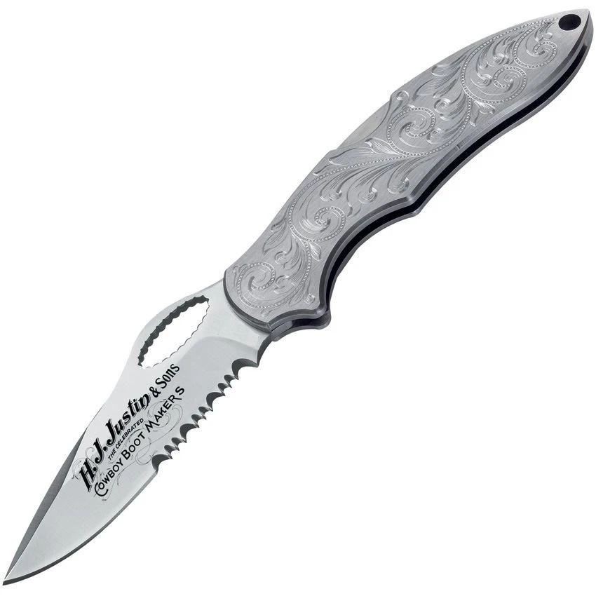 - 3″ (7.62cm) partially serrated AUS-8 stainless blade