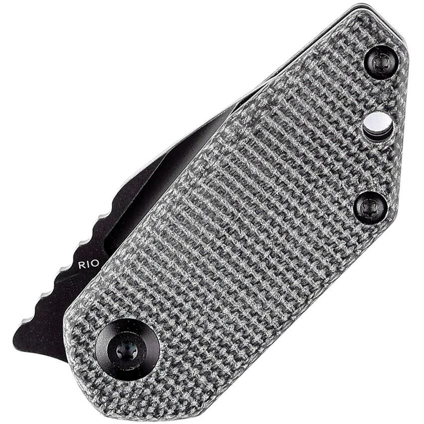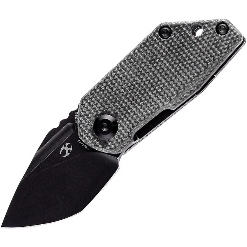 Model/Part Number – K3044A3. Kansept RIO Linerlock Black. 2.38″ (6.05cm) closed. 1.63″ (4.14cm) black stonewash finish Bohler M390 stainless tanto blade. Black canvas micarta handle. Extended tang. Lanyard hole. Black nylon pouch. Boxed. Made in China.