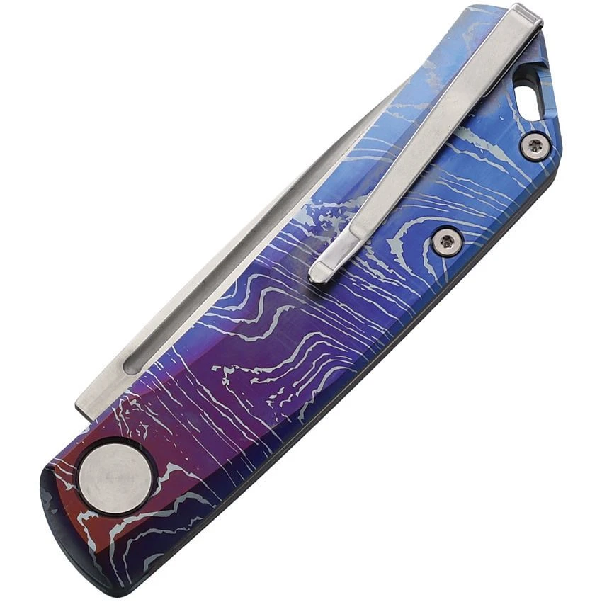 Model/Part Number – RS7001TC07. Real Steel Knives Luna TC Emotional Waves. 6.61″ open. 3.86″ closed. 2.76″ N690/ TC4 beadblast blade. Slip joint. Color: Blue Geometry. Made in China.