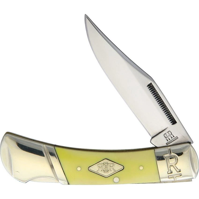- Rough Rider 1738 – Lockback Classic Carbon Steel Clip Point Blade Knife with Yellow Smooth Synthetic Handle