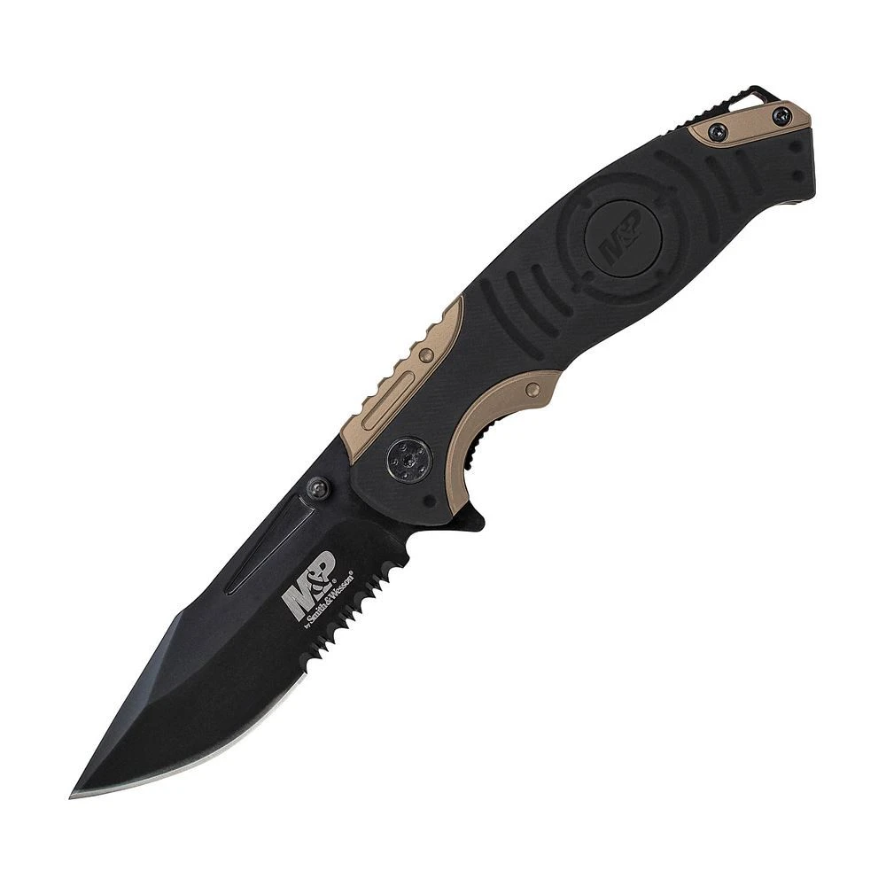 - Smith & Wesson MP13BS – M&P Part Serrated Drop Point Linerlock Folding Pocket Knife